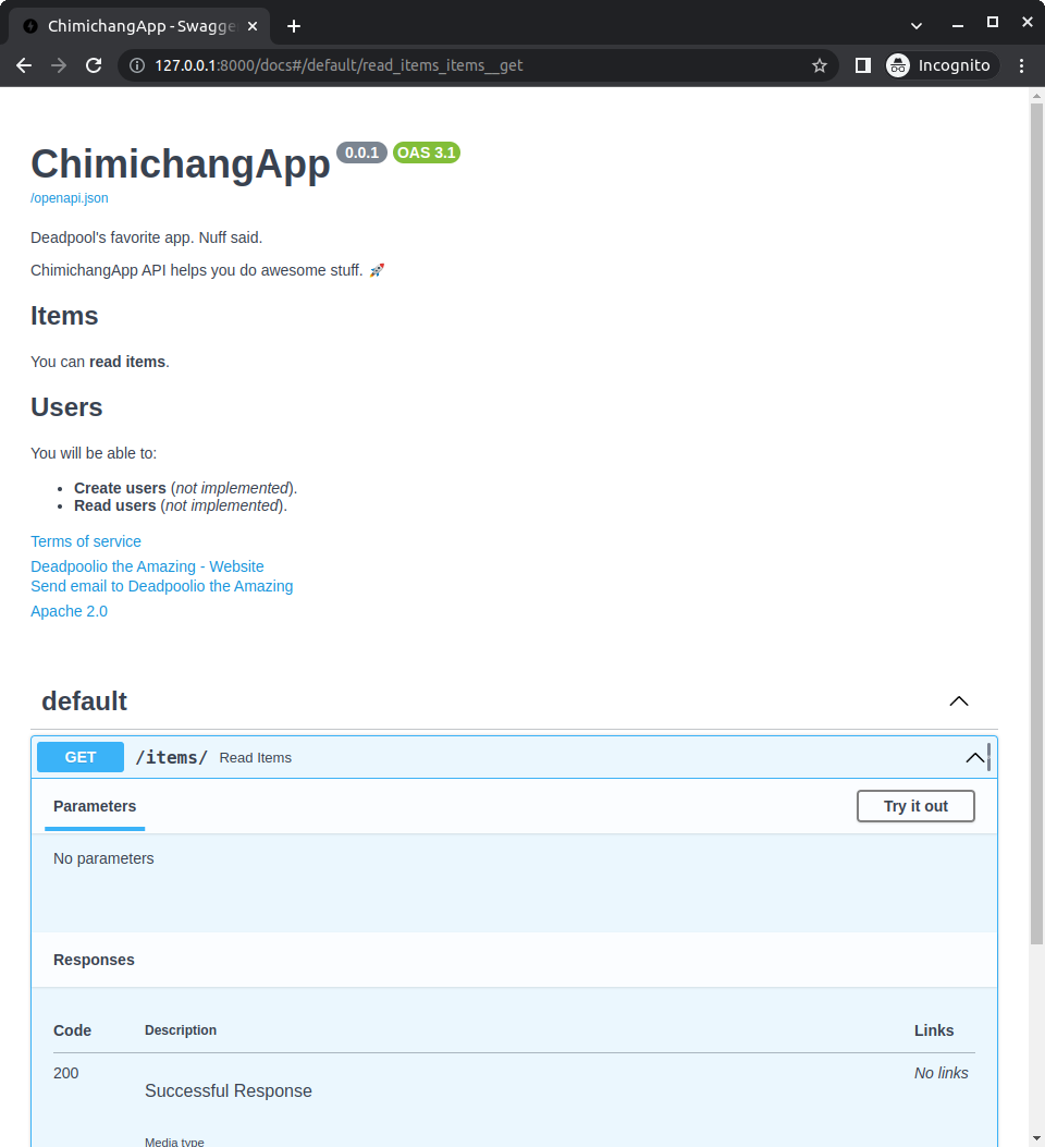 За замовчуванням схема OpenAPI надається за адресою /openapi.json.